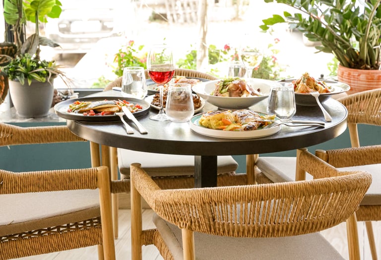 Ο εξωτερικός μας χώρος είναι ιδανικός για όλες αυτές τις ηλιόλουστες μέρες ή τις ζεστές νύχτες για να απολαύσετε το brunch, το μεσημεριανό ή το δείπνο σας!